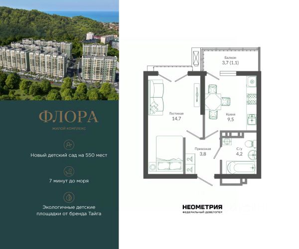 Проект включает в себя 7 жилых корпусов высотой 12 этажей. В подъездах выполнена дизайнерская отделка в светлой цветовой гамме с яркими акцентами, для удобства жителей в местах общего пользования предусмотрена навигация. В каждой секции предусмотрены помещения для хранения велосипедов и колясок с обустроенным местом для мойки колес и лап домашних животных. Покупателям в ЖК предложено множество планировочных решений: в наличии квартиры, как классического типа, так и европланировки. Из окон открываются виды на реку и горы. Квартиры сдаются без отделки. В состав комплекса входит школа на 2 000 мест, детский сад на 550 мест и фитнес-центр. На первых этажах расположены коммерческие помещения. Во дворах установлены детские площадки, спортивные комплексы и деревянные беседки для отдыха. По периметру ЖК ведется видеонаблюдение, к которому можно подключится online при помощи специального приложения для мобильных устройств. Рядом с комплексом располагается благоустроенная набережная реки Кудепста. Комплекс расположен в микрорайоне Кудепста города Сочи. В окрестностях района находится большая плантация пробкового дуба. В пешей доступности есть школы, детские сады, магазины, медучреждения, салоны красоты и места для отдыха. Комплекс расположен в 1,9 км от моря, и 7 км до Сочи.