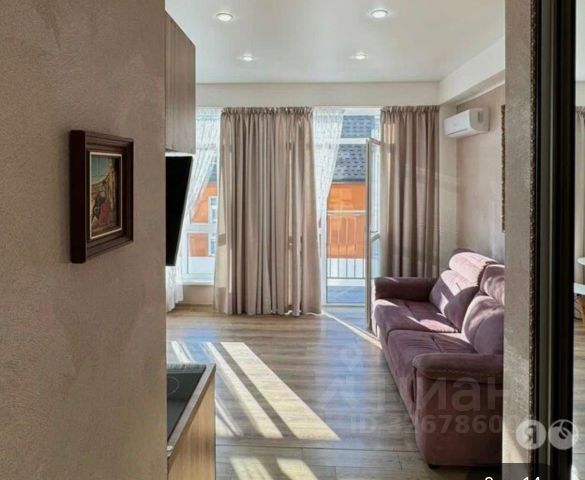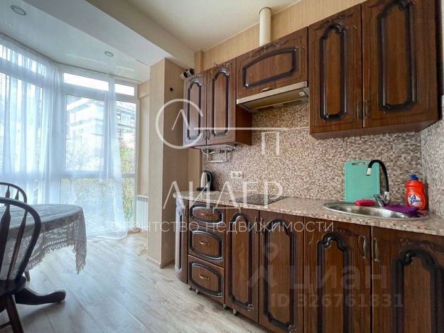 Кухня-гостиная 15 кв.м. с двумя большими окнами на юго-восток, откуда потрясающий вид на море и горы.