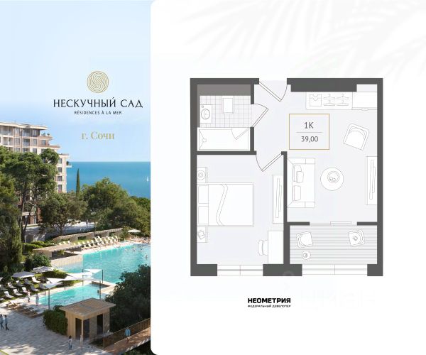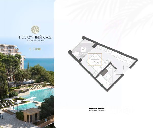 Нескучный сад Rsidences la mer — авторский курорт с атмосферой французской Ривьеры, где каждый день как увлекательное путешествие. Курортный комплекс Нескучный сад создан для тех, кто путешествует по миру в поисках идеального места, где можно замедлиться, ощутить жизнь всеми органами чувств, чувствовать заботу и премиальный сервис. Неометрия создала подобное пространство здесь — в сердце Сочи. Премиальный курорт имеет официальный статус пятизвездочного отеля, реализуется по ФЗ-214 с использованием эскроу-счетов. Состоит из многоуровневой приватной территории 4,5 га, пяти садов чувств, уникального парящего променада 1,3 га, ведущего к морю, и собственного концептуального пляжа. Камерная локация Курорт расположен в Адлерском районе Центрального Сочи, между морем и горами. Место выбрано не случайно и подчеркивает ценность замедления в центре динамичной жизни. Чтобы оградить вас от шума и суеты, Нескучный сад скрыт в объятиях реликтового парка. Находясь в сердце золотого треугольника Сочи - 10 минутах до международного аэропорта, 15 минутах до Олимпийского парка и 45 минутах до Горнолыжного курорта Роза Хутор и Красной Поляны, вы получаете долгожданную приватность и ощущение загородной жизни. Прогулка до собственного пляжа - 450 шагов незабываемых ощущений по уникальному парящему променаду между верхушек пицундских сосен и платанов. В вашем распоряжении инфраструктура собственного курорта Каждая деталь в Rsidences la mer продумана и настроена на волну удовольствий: пул концептуальных ресторанов, подогреваемые бассейны, два уровня wellness & SPA, детские плей хабы и развивающий центр, воркауты в окружении зелени и деловой-кластер делают Нескучный сад достойным выбором для самой взыскательной аудитории. Безукоризненный сервис пятизвездочного отеля Попадая в Нескучный сад, ощущаешь себя гостем фешенебельного отеля valet parking, cleaning Focus, деликатный консьерж-сервис освобождает от рутины, фрахтует яхты для морской прогулки, электронно регистрирует ваших гостей, рекомендует лучшие маршруты путешествий для знакомства с аутентичной культурой, локальной гастрономией, легендами и традициями Сочи, забронирует лучший столик в одном из ресторанов. Любимые блюда прямо в вашу резиденцию доставит flashbot робот. Личныи помощник предугадывает желания и заботится о том, чтобы вы отдыхали, а ваши активы росли. Продам 1-комнатную квартиру в новостройке в жилом районе Адлер в городе Сочи.