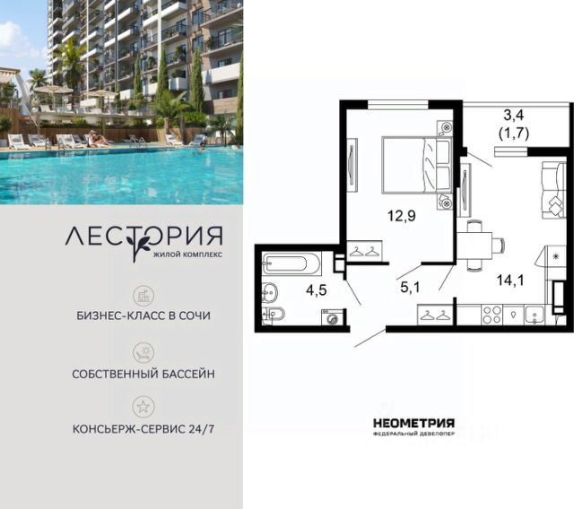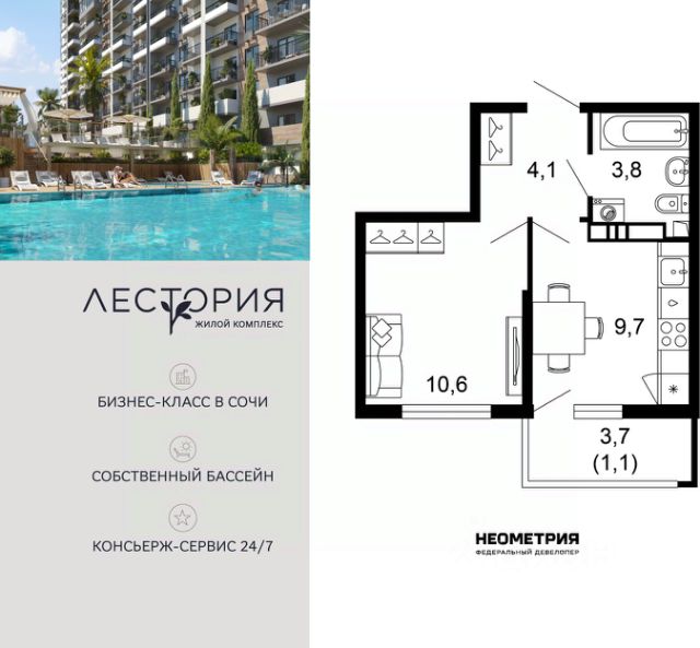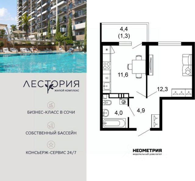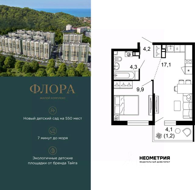 Продается квартира в ЖК "Флора" от федерального девелопера "Неометрия". Это жилой комплекс комфорт-класса в самом зеленом районе Сочи. При проектировании постарались максимально сохранить окружающую флору и фауну. Теплое море, горы, целебные источники, река, близость заповедника все это уже рядом с вами.