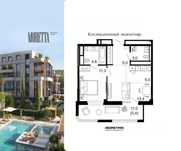 Моретта— первый и единственный премиальный жилой комплекс Сочи бутикового формата. Коллекционный дом воплощает идею тайного места роскошной безмятежности, где индивидуальный подход ощущается в каждой детали: камерной локации и подчеркнутой приватности, лимитированном числе резиденций, архитектуре и уникальном окружении, клубных привилегиях и культуре сервиса. Элитным дом расположен в самом тихом, живописном и экологичном районе Центрального Сочи, названном в честь древней крепости Мамай-кале. Моретта состоит из двух домов 2 и 6 этажей с природной геометрией, детского сада и прилегающего парка. Благодаря природному ландшафту с террас открываются виды на море и субтропическую зелень. Здания образуют приватное пространство двора-парка с изысканными зонами отдыха у воды, медитативной стены с водопадом, пейзажным бассейном с джакузи, доступным 365 дней в году. Каждое пространство от водных садов до лаунж зоны с камином и баром пронизано тишиной и гармонией. Экосистема Моретта создана по принципу пятизвездочного отеля. В распоряжении резидентов бутик-фитнес со спа, сауной и хамам, природный воркаут, спортивные и детские пространства, коворкинг и собственный ресторан. Внимательная консьерж-служба берет на себя повседневные вопросы от клининга и химчистки до гувернантки и личного водителя. Карта привилегий открывает доступ к эксклюзивным мероприятиям, бронированию яхт и вертолетов. Моретта — место, где время замедляется, чтобы вы ощутили всю полноту жизни. #ZMd2Zs 1-комнатная квартира в новостройке в микрорайоне Мамайка в городе Сочи.
