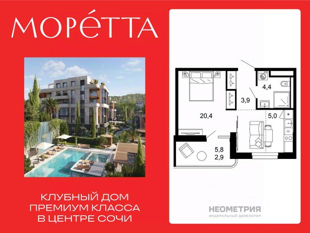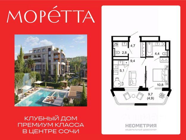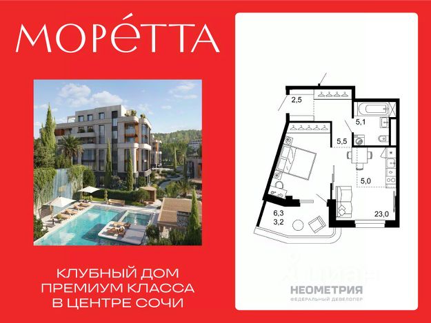 Моретта— первый и единственный премиальный жилой комплекс Сочи бутикового формата. Коллекционный дом воплощает идею тайного места роскошной безмятежности, где индивидуальный подход ощущается в каждой детали: камерной локации и подчеркнутой приватности, лимитированном числе резиденций, архитектуре и уникальном окружении, клубных привилегиях и культуре сервиса. Элитным дом расположен в самом тихом, живописном и экологичном районе Центрального Сочи, названном в честь древней крепости Мамай-кале. Моретта состоит из двух домов 2 и 6 этажей с природной геометрией, детского сада и прилегающего парка. Благодаря природному ландшафту с террас открываются виды на море и субтропическую зелень. Здания образуют приватное пространство двора-парка с изысканными зонами отдыха у воды, медитативной стены с водопадом, пейзажным бассейном с джакузи, доступным 365 дней в году. Каждое пространство от водных садов до лаунж зоны с камином и баром пронизано тишиной и гармонией. Экосистема Моретта создана по принципу пятизвездочного отеля. В распоряжении резидентов бутик-фитнес со спа, сауной и хамам, природный воркаут, спортивные и детские пространства, коворкинг и собственный ресторан. Внимательная консьерж-служба берет на себя повседневные вопросы от клининга и химчистки до гувернантки и личного водителя. Карта привилегий открывает доступ к эксклюзивным мероприятиям, бронированию яхт и вертолетов. Моретта — место, где время замедляется, чтобы вы ощутили всю полноту жизни. #Z6d2Zw 1-комнатная квартира в новостройке в микрорайоне Мамайка в городе Сочи.