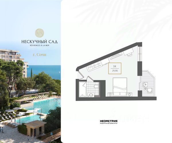 Нескучный сад Rsidences la mer — авторский курорт с атмосферой французской Ривьеры, где каждый день как увлекательное путешествие. Курортный комплекс Нескучный сад создан для тех, кто путешествует по миру в поисках идеального места, где можно замедлиться, ощутить жизнь всеми органами чувств, чувствовать заботу и премиальный сервис. Неометрия создала подобное пространство здесь — в сердце Сочи. Премиальный курорт имеет официальный статус пятизвездочного отеля, реализуется по ФЗ-214 с использованием эскроу-счетов. Состоит из многоуровневой приватной территории 4,5 га, пяти садов чувств, уникального парящего променада 1,3 га, ведущего к морю, и собственного концептуального пляжа. Камерная локация Курорт расположен в Адлерском районе Центрального Сочи, между морем и горами. Место выбрано не случайно и подчеркивает ценность замедления в центре динамичной жизни. Чтобы оградить вас от шума и суеты, Нескучный сад скрыт в объятиях реликтового парка. Находясь в сердце золотого треугольника Сочи - 10 минутах до международного аэропорта, 15 минутах до Олимпийского парка и 45 минутах до Горнолыжного курорта Роза Хутор и Красной Поляны, вы получаете долгожданную приватность и ощущение загородной жизни. Прогулка до собственного пляжа - 450 шагов незабываемых ощущений по уникальному парящему променаду между верхушек пицундских сосен и платанов. В вашем распоряжении инфраструктура собственного курорта Каждая деталь в Rsidences la mer продумана и настроена на волну удовольствий: пул концептуальных ресторанов, подогреваемые бассейны, два уровня wellness & SPA, детские плей хабы и развивающий центр, воркауты в окружении зелени и деловой-кластер делают Нескучный сад достойным выбором для самой взыскательной аудитории. Безукоризненный сервис пятизвездочного отеля Попадая в Нескучный сад, ощущаешь себя гостем фешенебельного отеля valet parking, cleaning Focus, деликатный консьерж-сервис освобождает от рутины, фрахтует яхты для морской прогулки, электронно регистрирует ваших гостей, рекомендует лучшие маршруты путешествий для знакомства с аутентичной культурой, локальной гастрономией, легендами и традициями Сочи, забронирует лучший столик в одном из ресторанов. Любимые блюда прямо в вашу резиденцию доставит flashbot робот. Личныи помощник предугадывает желания и заботится о том, чтобы вы отдыхали, а ваши активы росли.