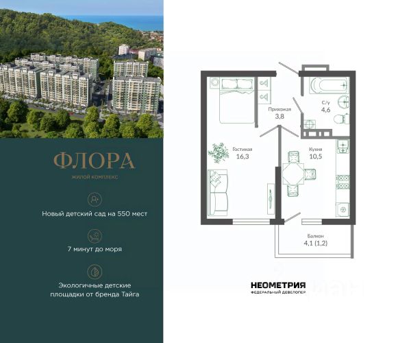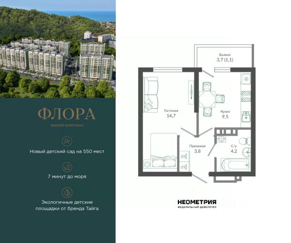 ЖК Отражение - это настоящий бизнес-класс в самом сердце города. Идеальный баланс трех ценностей: комфорта, безопасности и качества для гармоничной и спокойной жизни. Самое важное в шаговой доступности - поликлиники, сад, школа, кинотеатр, православный храм, огромное количество магазинов и аптек, отделение банка, салоны красоты, почта. Объект расположен внутри сложившегося микрорайона со всем необходимым. Донская респектабельный район, который сегодня переживает новый расцвет и обновляется. Насыщенная инфраструктура района становится только лучше и разнообразнее. Не вы подстраиваетесь под структуру, а она под вас - здесь времени хватит на все. С помощью развитой внутренней инфраструктуры создаётся пространство больших возможностей, самые необходимые товары и услуги - на расстоянии минутной поездки на лифте. В домах предусмотрена подземная парковка и зарядная станция для электрокаров. Закрытая охраняемая территория; вход в подъезд по Face-id; зона для работы и переговоров; зал для йоги и фитнеса; зона гольфа и настольный теннис; шахматный стол и мини-хоккей; амфитеатр, который в вечернее время будет функционировать как кинотеатр на свежем воздухе; территория с зонами для отдыха и детской игровой площадкой. Купить 1-комнатную квартиру с отделкой в Сочи.