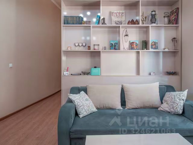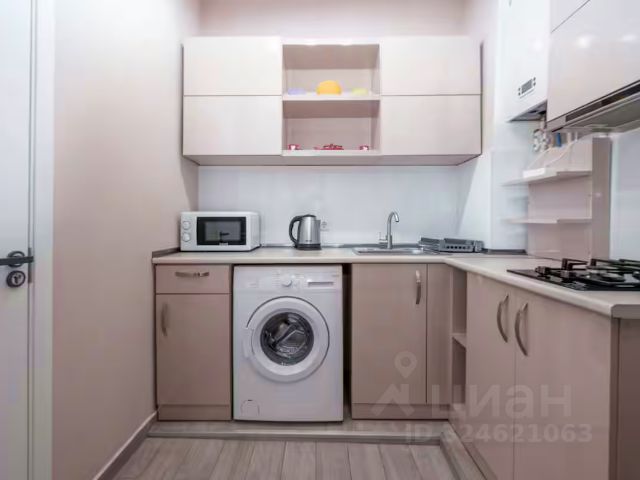 . Планировка представляет собой кухню-гостиную с выходом на балкон, выделенную спальню с рабочей зоной, благодаря чему в квартире могут разместиться до четырёх человек.