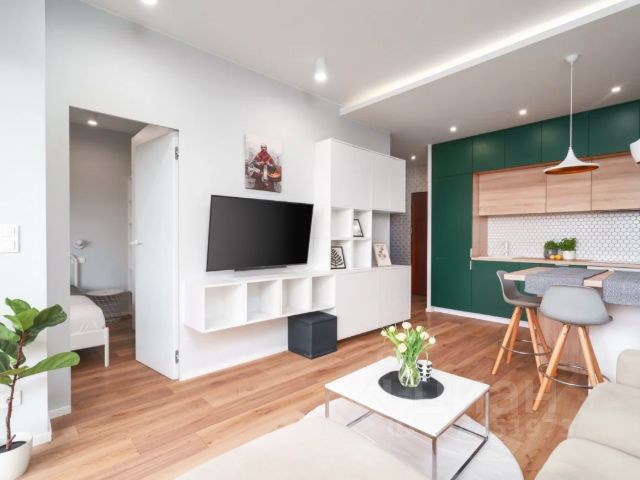 Новый ремонт. Дом новый 2025 года постройки. Проведён интернет (Wi-Fi) и телевидение. Сделан теплый пол. Квартира оснащена кондиционером. В гардеробной стоит вместительный шкаф и стиральная машинка. В прихожей место для верхней одежды и обуви. Полностью оборудованная кухня: холодильник, электроплита, микроволновка, духовой шкаф, посудомоечная машинка, телевизор и обеденный стол с табуретами. В спальне расположены: двуспальная кровать, прикроватные тумбы, телевизор. На балконе стоит уличный столик.