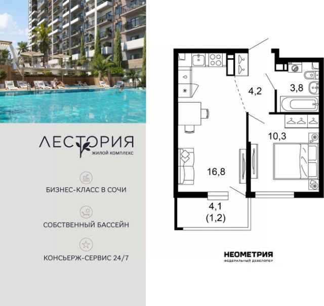 Продается квартира в жилом комплексе бизнес-класса "Лестория". В составе ЖК предусмотрена собственная аквазона площадью 473 квадратных метра с двумя подогреваемыми бассейнами, что соответствуют стандартам бизнес-класса. Аквазона объединяет взрослый и детский бассейны. В welcome-zone к услугам посетителей шезлонги и все необходимые принадлежности. Раздевалки с душевыми комнатами, инфракрасная сауна — здесь все предусмотрено для комфортного отдыха и полного расслабления. Для водного комплекса продуман отдельный вход, оборудованный системой контроля и управления доступом (СКУД). Аквазона только часть уникальной инфраструктуры "Лестории", которая включает в себя также благоустроенную территорию с пятьюдесятью функциональными зонами для прогулок, отдыха и занятий спортом, видовые террасы на крышах для отдыха, работы и встреч с друзьями, а также пространство набережной Кудепсты с шезлонгами и перголами. Жилой комплекс "Лестория" состоит из шести домов высотностью от 15 до 17 этажей, окружённых зеленым массивом национального парка. На придомовой территории для жителей предусмотрены закрытые дворы с круглосуточным видеонаблюдением, активити-центр для детей и подростков, тихие зоны для отдыха и медитации. На крышах домов будут созданы зеленые террасы для наслаждения прекрасными видами на море и горы. В проекте предусмотрены разные варианты отделки квартир под потребности покупателей. Тем, кто хочет воплотить в жизнь собственные интерьерные задумки, подойдут квартиры без ремонта. Для комфортной жизни и отдыха в комплексе будет работать круглосуточный консьерж-сервис уровня 5*, который с легкостью закроет все ежедневные потребности: от заказа продуктов и встречи гостей в аэропорту до выгула и дрессировки питомца. К услугам жителей ЖК "Лестория" — собственная управляющая компания, для инвесторов предоставляются услуги доверительного управления. #ZmETfV Продам 1-комнатную квартиру с ремонтом в Сочи.
