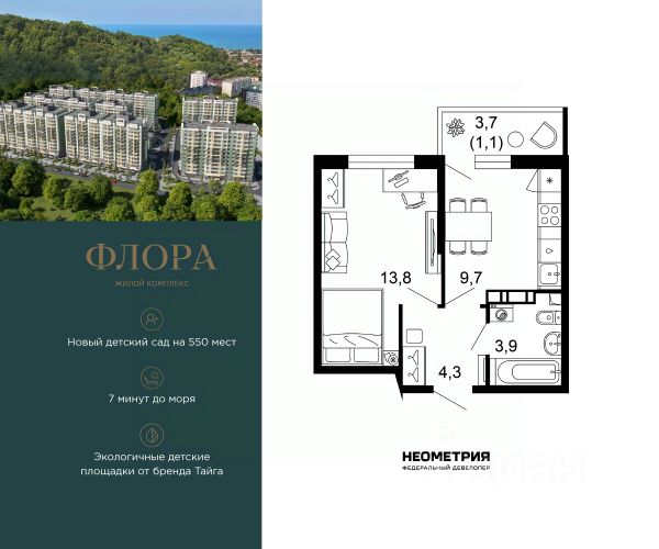 Проект включает в себя 7 жилых корпусов высотой 12 этажей. В подъездах выполнена дизайнерская отделка в светлой цветовой гамме с яркими акцентами, для удобства жителей в местах общего пользования предусмотрена навигация. В каждой секции предусмотрены помещения для хранения велосипедов и колясок с обустроенным местом для мойки колес и лап домашних животных. Покупателям в ЖК предложено множество планировочных решений: в наличии квартиры, как классического типа, так и европланировки. Из окон открываются виды на реку и горы. Квартиры сдаются без отделки. В состав комплекса входит школа на 2 000 мест, детский сад на 550 мест и фитнес-центр. На первых этажах расположены коммерческие помещения. Во дворах установлены детские площадки, спортивные комплексы и деревянные беседки для отдыха. По периметру ЖК ведется видеонаблюдение, к которому можно подключится online при помощи специального приложения для мобильных устройств. Рядом с комплексом располагается благоустроенная набережная реки Кудепста. Комплекс расположен в микрорайоне Кудепста города Сочи. В окрестностях района находится большая плантация пробкового дуба. В пешей доступности есть школы, детские сады, магазины, медучреждения, салоны красоты и места для отдыха. Комплекс расположен в 1,9 км от моря, и 7 км до Сочи.