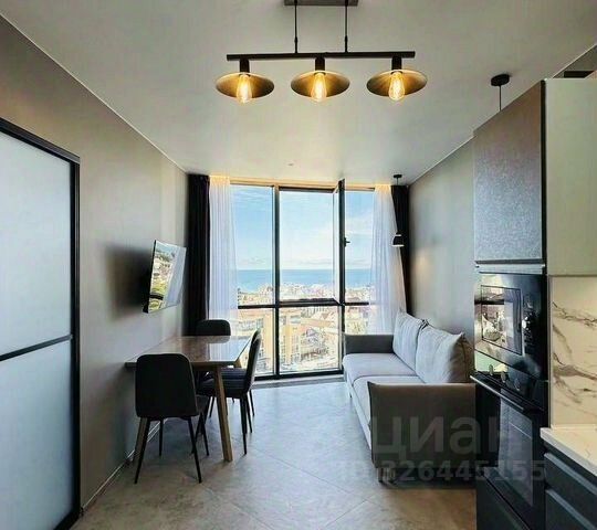 Статус-квартира! Ваша мечта о жизни у моря становится реальностью! Представляем вашему вниманию очаровательную однокомнатную квартиру в престижном жилом комплексе "Морская симфония" в солнечном Сочи. Расположенная на улице Ленина, эта квартира предлагает не только комфорт, но и захватывающий вид на бескрайнее море, который будет радовать вас каждый день. Всего в 7 минутах неспешной ходьбы от вас ласковые волны Черного моря. Сама квартира, площадью 35 кв.м., находится на 7 этаже 22-этажного современного монолитного дома. Забудьте о хлопотах с ремонтом и покупкой мебели! Квартира полностью готова к проживанию: выполнен стильный современный ремонт, установлена вся необходимая техника и мебель. Светлая и просторная комната станет вашим идеальным местом для отдыха и создания домашнего уюта. Жилой комплекс "Морская симфония" создан для вашего удобства. Три лифта, оборудованные пандусом, обеспечат комфортное передвижение для всех. На территории комплекса предусмотрена наземная парковка, а также бассейн и спортивные площадки с тренажерами для активного отдыха. Надежное монолитное строение дома гарантирует безопасность и долговечность. Район обладает развитой инфраструктурой: в шаговой доступности детские сады и магазины, что делает повседневную жизнь максимально комфортной. Отличная транспортная развязка позволит вам легко добраться в любую точку города. Не упустите свой шанс! Приглашаем вас на просмотр этой замечательной квартиры. Запишитесь на удобное для вас время и убедитесь сами во всех ее преимуществах. Документы в полном порядке: один взрослый собственник, никто не зарегистрирован. Быстрый выход на сделку гарантирован.Статус квартира! Продам 1-комнатную квартиру (вторичка) в жк Морская симфония в Сочи.