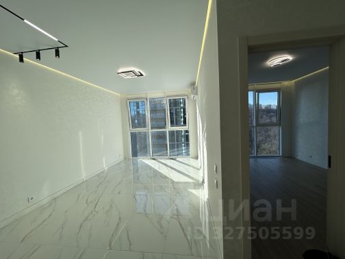 Пол - качественный каменный ламинат SPC 8мм., стены - однотонные бельгийские обои, натяжной потолок по всей квартире + потолочные плинтуса, точечные зоны освещения + по центру отдельные светильники. Скрытые потолочные гардины в спальне и в кухне-гостиной. Панорамные окна во всей квартире. Качественные межкомнатные двери. Проведено центральное отопление, в комнате и в гостиной установлены дизайнерские вертикальные радиаторы отопления.