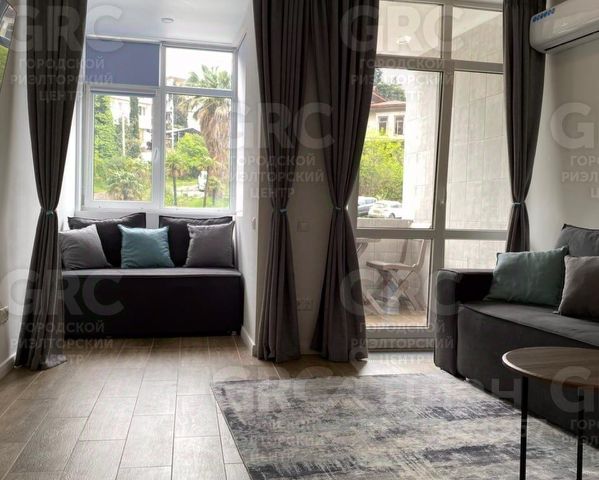 Квартира площадью 33 кв. м. Панорамное остекление, а также видовая лоджия квартиры - позволит насладиться незабываемым видом на море, и окрестности города Сочи. Вид на сторону морпорта и центра города. Самый красивый в доме.