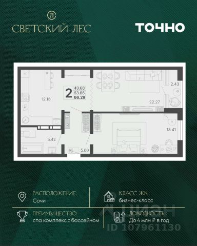 Жилой комплекс состоит из 7 домов переменной этажности от 11 до 20 этажей. В холлах и вестибюлях выполнена дизайнерская отделка, установлены скоростные лифты. На 1 этажах расположены зоны ожидания и колясочные. В проекте предложено множество планировочных решений: в наличии квартиры классического типа. Сдаются они с подчистовой отделкой, панорамными окнами и высотой потолков в 3м. Некоторые квартиры имеют вид на лесной массив и горы. На закрытой территории комплекса выполнен ландшафтный дизайн, установлены безопасные детские площадки для детей всех возрастов, места для отдыха, зоны барбекю с беседками, спортивные площадки, установлен открытый бассейн. На территории также оборудована своя набережная протяженностью в 1,2км. Для владельцев автомобилей предусмотрен отдельный многоуровневый паркинг. Жилой комплекс располагается в активно развивающемся Хостинском районе. В нескольких минутах ходьбы находятся поликлиники, школы, детские сады, кинотеатр, магазины и кафе. До центра Сочи можно добраться за 30 минут транспортом.