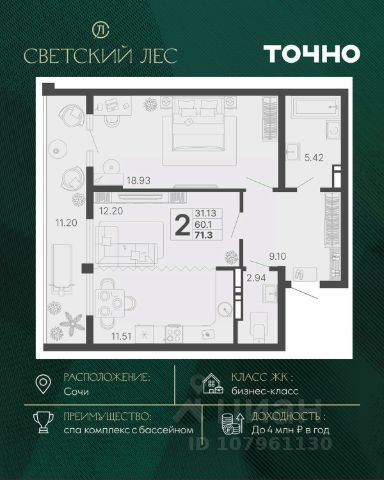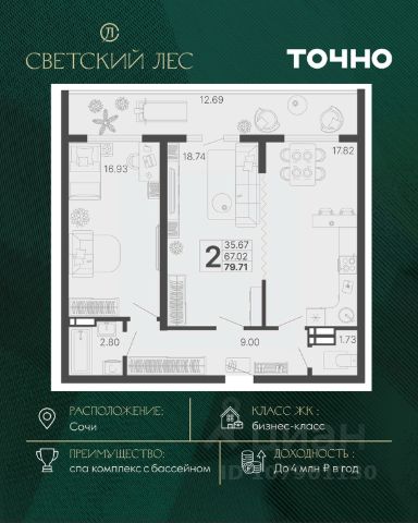 Жилой комплекс состоит из 7 домов переменной этажности от 11 до 20 этажей. В холлах и вестибюлях выполнена дизайнерская отделка, установлены скоростные лифты. На 1 этажах расположены зоны ожидания и колясочные. В проекте предложено множество планировочных решений: в наличии квартиры классического типа. Сдаются они с подчистовой отделкой, панорамными окнами и высотой потолков в 3м. Некоторые квартиры имеют вид на лесной массив и горы. На закрытой территории комплекса выполнен ландшафтный дизайн, установлены безопасные детские площадки для детей всех возрастов, места для отдыха, зоны барбекю с беседками, спортивные площадки, установлен открытый бассейн. На территории также оборудована своя набережная протяженностью в 1,2км. Для владельцев автомобилей предусмотрен отдельный многоуровневый паркинг. Жилой комплекс располагается в активно развивающемся Хостинском районе. В нескольких минутах ходьбы находятся поликлиники, школы, детские сады, кинотеатр, магазины и кафе. До центра Сочи можно добраться за 30 минут транспортом.