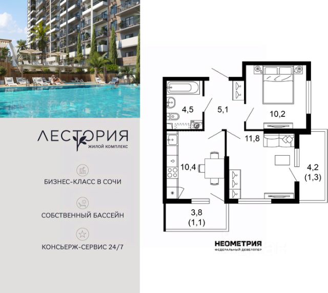 Проект включает в себя 7 жилых корпусов высотой 12 этажей. В подъездах выполнена дизайнерская отделка в светлой цветовой гамме с яркими акцентами, для удобства жителей в местах общего пользования предусмотрена навигация. В каждой секции предусмотрены помещения для хранения велосипедов и колясок с обустроенным местом для мойки колес и лап домашних животных. Покупателям в ЖК предложено множество планировочных решений: в наличии квартиры, как классического типа, так и европланировки. Из окон открываются виды на реку и горы. Квартиры сдаются без отделки. В состав комплекса входит школа на 2 000 мест, детский сад на 550 мест и фитнес-центр. На первых этажах расположены коммерческие помещения. Во дворах установлены детские площадки, спортивные комплексы и деревянные беседки для отдыха. По периметру ЖК ведется видеонаблюдение, к которому можно подключится online при помощи специального приложения для мобильных устройств. Рядом с комплексом располагается благоустроенная набережная реки Кудепста. Комплекс расположен в микрорайоне Кудепста города Сочи. В окрестностях района находится большая плантация пробкового дуба. В пешей доступности есть школы, детские сады, магазины, медучреждения, салоны красоты и места для отдыха. Комплекс расположен в 1,9 км от моря, и 7 км до Сочи.
