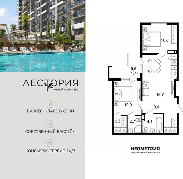Проект включает в себя 7 жилых корпусов высотой 12 этажей. В подъездах выполнена дизайнерская отделка в светлой цветовой гамме с яркими акцентами, для удобства жителей в местах общего пользования предусмотрена навигация. В каждой секции предусмотрены помещения для хранения велосипедов и колясок с обустроенным местом для мойки колес и лап домашних животных. Покупателям в ЖК предложено множество планировочных решений: в наличии квартиры, как классического типа, так и европланировки. Из окон открываются виды на реку и горы. Квартиры сдаются без отделки. В состав комплекса входит школа на 2 000 мест, детский сад на 550 мест и фитнес-центр. На первых этажах расположены коммерческие помещения. Во дворах установлены детские площадки, спортивные комплексы и деревянные беседки для отдыха. По периметру ЖК ведется видеонаблюдение, к которому можно подключится online при помощи специального приложения для мобильных устройств. Рядом с комплексом располагается благоустроенная набережная реки Кудепста. Комплекс расположен в микрорайоне Кудепста города Сочи. В окрестностях района находится большая плантация пробкового дуба. В пешей доступности есть школы, детские сады, магазины, медучреждения, салоны красоты и места для отдыха. Комплекс расположен в 1,9 км от моря, и 7 км до Сочи.