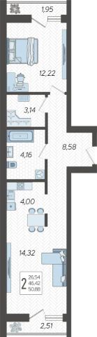 - две изолированные комнаты 19 кв.м и 12,2 кв.м (каждая комната имеет свою лоджию)