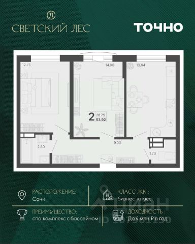 В продаже 2-комнатная квартира площадью 60, расположенная Литер 6 жилого комплекса комфорт+ класса "Горный квартал". Комплекс от девелопера AVA находится в Сочи, Хостинского района, в 15 минутах езды от центра города.