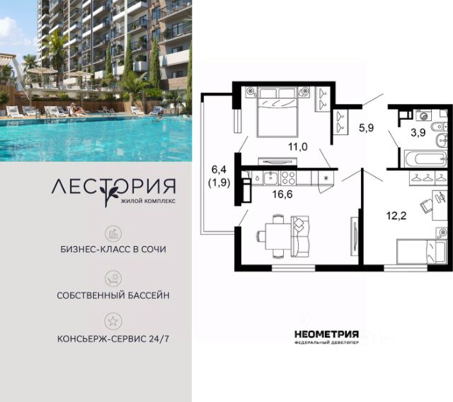 Проект включает в себя 7 жилых корпусов высотой 12 этажей. В подъездах выполнена дизайнерская отделка в светлой цветовой гамме с яркими акцентами, для удобства жителей в местах общего пользования предусмотрена навигация. В каждой секции предусмотрены помещения для хранения велосипедов и колясок с обустроенным местом для мойки колес и лап домашних животных. Покупателям в ЖК предложено множество планировочных решений: в наличии квартиры, как классического типа, так и европланировки. Из окон открываются виды на реку и горы. Квартиры сдаются без отделки. В состав комплекса входит школа на 2 000 мест, детский сад на 550 мест и фитнес-центр. На первых этажах расположены коммерческие помещения. Во дворах установлены детские площадки, спортивные комплексы и деревянные беседки для отдыха. По периметру ЖК ведется видеонаблюдение, к которому можно подключится online при помощи специального приложения для мобильных устройств. Рядом с комплексом располагается благоустроенная набережная реки Кудепста. Комплекс расположен в микрорайоне Кудепста города Сочи. В окрестностях района находится большая плантация пробкового дуба. В пешей доступности есть школы, детские сады, магазины, медучреждения, салоны красоты и места для отдыха. Комплекс расположен в 1,9 км от моря, и 7 км до Сочи.