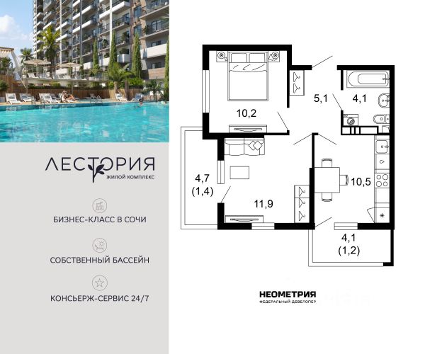 Проект включает в себя 7 жилых корпусов высотой 12 этажей. В подъездах выполнена дизайнерская отделка в светлой цветовой гамме с яркими акцентами, для удобства жителей в местах общего пользования предусмотрена навигация. В каждой секции предусмотрены помещения для хранения велосипедов и колясок с обустроенным местом для мойки колес и лап домашних животных. Покупателям в ЖК предложено множество планировочных решений: в наличии квартиры, как классического типа, так и европланировки. Из окон открываются виды на реку и горы. Квартиры сдаются без отделки. В состав комплекса входит школа на 2 000 мест, детский сад на 550 мест и фитнес-центр. На первых этажах расположены коммерческие помещения. Во дворах установлены детские площадки, спортивные комплексы и деревянные беседки для отдыха. По периметру ЖК ведется видеонаблюдение, к которому можно подключится online при помощи специального приложения для мобильных устройств. Рядом с комплексом располагается благоустроенная набережная реки Кудепста. Комплекс расположен в микрорайоне Кудепста города Сочи. В окрестностях района находится большая плантация пробкового дуба. В пешей доступности есть школы, детские сады, магазины, медучреждения, салоны красоты и места для отдыха. Комплекс расположен в 1,9 км от моря, и 7 км до Сочи.