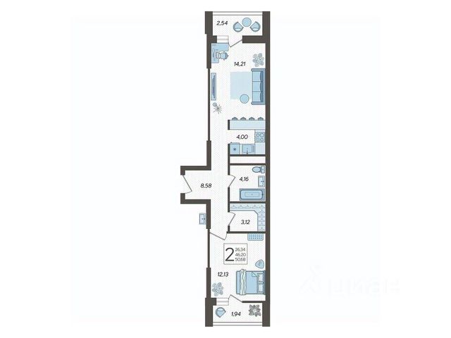 В продаже 2-комнатная квартира, площадью 50.69, расположенная Литер 11 жилого комплекса бизнес-класса "Кислород". Комплекс от девелопера AVA находится в Сочи, на северном склоне горы Бытха, в 7 минутах езды от центра города.