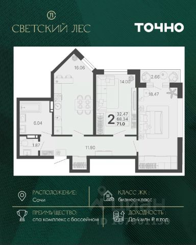 Жилой комплекс состоит из 7 домов переменной этажности от 11 до 20 этажей. В холлах и вестибюлях выполнена дизайнерская отделка, установлены скоростные лифты. На 1 этажах расположены зоны ожидания и колясочные. В проекте предложено множество планировочных решений: в наличии квартиры классического типа. Сдаются они с подчистовой отделкой, панорамными окнами и высотой потолков в 3м. Некоторые квартиры имеют вид на лесной массив и горы. На закрытой территории комплекса выполнен ландшафтный дизайн, установлены безопасные детские площадки для детей всех возрастов, места для отдыха, зоны барбекю с беседками, спортивные площадки, установлен открытый бассейн. На территории также оборудована своя набережная протяженностью в 1,2км. Для владельцев автомобилей предусмотрен отдельный многоуровневый паркинг. Жилой комплекс располагается в активно развивающемся Хостинском районе. В нескольких минутах ходьбы находятся поликлиники, школы, детские сады, кинотеатр, магазины и кафе. До центра Сочи можно добраться за 30 минут транспортом.