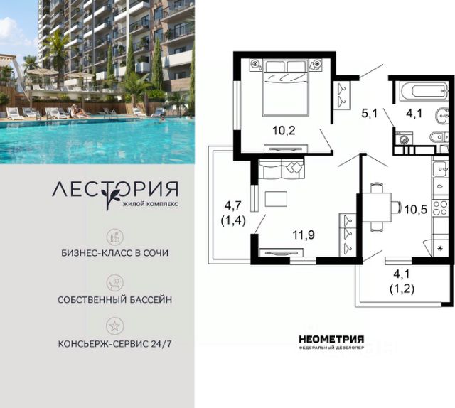 Продается квартира в жилом комплексе бизнес-класса "Лестория". В составе ЖК предусмотрена собственная аквазона площадью 473 квадратных метра с двумя подогреваемыми бассейнами, что соответствуют стандартам бизнес-класса. Аквазона объединяет взрослый и детский бассейны. В welcome-zone к услугам посетителей шезлонги и все необходимые принадлежности. Раздевалки с душевыми комнатами, инфракрасная сауна — здесь все предусмотрено для комфортного отдыха и полного расслабления. Для водного комплекса продуман отдельный вход, оборудованный системой контроля и управления доступом (СКУД). Аквазона только часть уникальной инфраструктуры "Лестории", которая включает в себя также благоустроенную территорию с пятьюдесятью функциональными зонами для прогулок, отдыха и занятий спортом, видовые террасы на крышах для отдыха, работы и встреч с друзьями, а также пространство набережной Кудепсты с шезлонгами и перголами. Жилой комплекс "Лестория" состоит из шести домов высотностью от 15 до 17 этажей, окружённых зеленым массивом национального парка. На придомовой территории для жителей предусмотрены закрытые дворы с круглосуточным видеонаблюдением, активити-центр для детей и подростков, тихие зоны для отдыха и медитации. На крышах домов будут созданы зеленые террасы для наслаждения прекрасными видами на море и горы. В проекте предусмотрены разные варианты отделки квартир под потребности покупателей. Тем, кто хочет воплотить в жизнь собственные интерьерные задумки, подойдут квартиры без ремонта. Для комфортной жизни и отдыха в комплексе будет работать круглосуточный консьерж-сервис уровня 5*, который с легкостью закроет все ежедневные потребности: от заказа продуктов и встречи гостей в аэропорту до выгула и дрессировки питомца. К услугам жителей ЖК "Лестория" — собственная управляющая компания, для инвесторов предоставляются услуги доверительного управления. #26AtuF