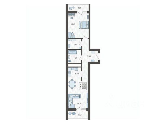 В продаже 2-комнатная квартира, площадью 50.69, расположенная Литер 11 жилого комплекса бизнес-класса "Кислород". Комплекс от девелопера AVA находится в Сочи, на северном склоне горы Бытха, в 7 минутах езды от центра города.