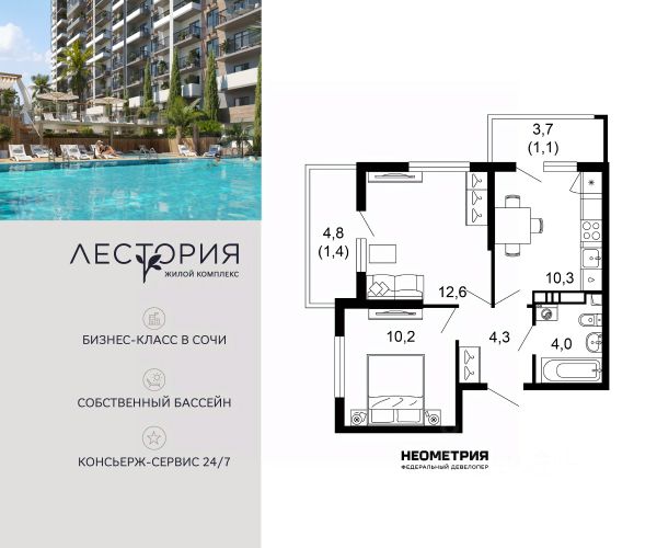 Жилой комплекс "Чайные холмы" - идеальное место для тех, кто ищет спокойствие, красоту и гармонию в окружении природы. Расположенный в курортной зоне Черноморского побережья, в пгт Дагомыс, этот жилой комплекс предлагает уникальное сочетание красивых пейзажей и экологической чистоты. Архитектурные решения зданий жилого комплекса поражают своей элегантностью и сдержанной красотой. ЖК включает в себя 8 монолитных домов переменной этажности от 15 до 16 этажей. Строгие формы линий внешнего вентилируемого фасада в сочетании со светлыми поверхностями стен создают атмосферу изысканности и эстетической привлекательности. А вечером при включенной подсветке жилой комплекс выглядит невероятно утонченно и стильно. Жилой комплекс является настоящим уголком рая. Это непревзойденный уровень комфорта и качества жизни. Свежий воздух, прекрасные виды на чайные плантации, море и горы - все это станет вашим ежедневным спутником. Вы просыпаетесь с чувством благодатного места, где природа воплощена в каждой детали. Все квартиры представлены со свободной планировкой, что позволит воплотить ваши самые смелые архитектурные и дизайнерские идеи. Высокие потолки 2,95 м создают атмосферу простора и свободы. В ЖК предусмотрено дистанционное управление шлагбаумом, круглосуточное видеонаблюдение и консьерж-сервис, которые обеспечат вам ощущение безопасности и спокойствия. Четырехуровневый паркинг на 565 мест и автостоянка на закрытой территории, предоставляющая более 130 мест для автовладельцев. На территории также располагается 3-х этажное здание дополнительного образования, где ваши дети смогут получить качественное образование. Тренажеры и воркаут зоны для поддержания физической формы и здоровья, а также 6 детских площадок и 2 спортивные площадки для активного отдыха и занятий спортом. ЖК "Чайные Холмы" предлагает широкий выбор инфраструктуры для вашего удобства. Рядом с комплексом расположены детские сады, школы, магазины, аптеки и рынок - все, что необходимо для полноценной жизни. А до одного из самых лучших пляжей Сочи, который носит международный знак качества "Голубой Флаг", всего 3 километра пешком по живописной набережной протяженностью более 1 километра, оборудованной скамейками с навесами. Не упустите возможность приобрести свое идеальное жилье! Обратитесь к нам прямо сейчас, и наши специалисты ответят на все ваши вопросы и помогут подобрать лучшие планировочные решения. Продается 2-комнатная квартира на 13 этаже в Сочи.
