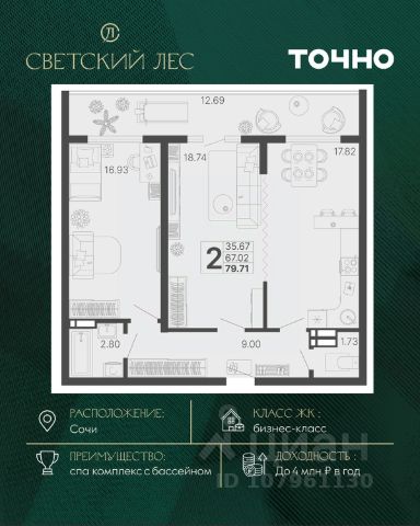 Жилой комплекс состоит из 7 домов переменной этажности от 11 до 20 этажей. В холлах и вестибюлях выполнена дизайнерская отделка, установлены скоростные лифты. На 1 этажах расположены зоны ожидания и колясочные. В проекте предложено множество планировочных решений: в наличии квартиры классического типа. Сдаются они с подчистовой отделкой, панорамными окнами и высотой потолков в 3м. Некоторые квартиры имеют вид на лесной массив и горы. На закрытой территории комплекса выполнен ландшафтный дизайн, установлены безопасные детские площадки для детей всех возрастов, места для отдыха, зоны барбекю с беседками, спортивные площадки, установлен открытый бассейн. На территории также оборудована своя набережная протяженностью в 1,2км. Для владельцев автомобилей предусмотрен отдельный многоуровневый паркинг. Жилой комплекс располагается в активно развивающемся Хостинском районе. В нескольких минутах ходьбы находятся поликлиники, школы, детские сады, кинотеатр, магазины и кафе. До центра Сочи можно добраться за 30 минут транспортом.