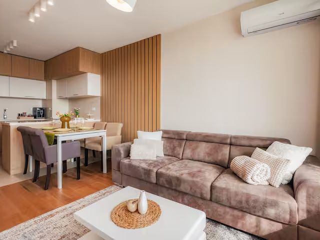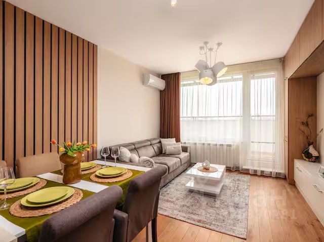 Выполнен качественный современный ремонт с использованием надёжных материалов. Планировка продумана для комфортного проживания: две изолированные спальни, просторная гостиная зона, функциональная кухня, два полноценных санузла и лоджия. Такое решение идеально подойдёт как для семьи, так и для тех, кто ценит личное пространство и комфорт.