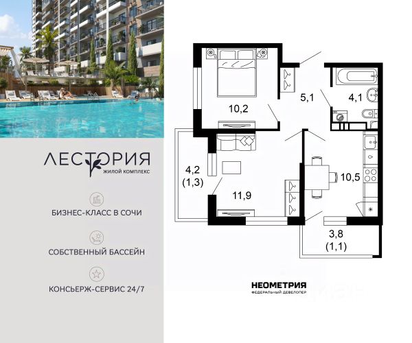 Продается квартира в жилом комплексе бизнес-класса "Лестория". В составе ЖК предусмотрена собственная аквазона площадью 473 квадратных метра с двумя подогреваемыми бассейнами, что соответствуют стандартам бизнес-класса. Аквазона объединяет взрослый и детский бассейны. В welcome-zone к услугам посетителей шезлонги и все необходимые принадлежности. Раздевалки с душевыми комнатами, инфракрасная сауна — здесь все предусмотрено для комфортного отдыха и полного расслабления. Для водного комплекса продуман отдельный вход, оборудованный системой контроля и управления доступом (СКУД). Аквазона только часть уникальной инфраструктуры "Лестории", которая включает в себя также благоустроенную территорию с пятьюдесятью функциональными зонами для прогулок, отдыха и занятий спортом, видовые террасы на крышах для отдыха, работы и встреч с друзьями, а также пространство набережной Кудепсты с шезлонгами и перголами. Жилой комплекс "Лестория" состоит из шести домов высотностью от 15 до 17 этажей, окружённых зеленым массивом национального парка. На придомовой территории для жителей предусмотрены закрытые дворы с круглосуточным видеонаблюдением, активити-центр для детей и подростков, тихие зоны для отдыха и медитации. На крышах домов будут созданы зеленые террасы для наслаждения прекрасными видами на море и горы. В проекте предусмотрены разные варианты отделки квартир под потребности покупателей. Тем, кто хочет воплотить в жизнь собственные интерьерные задумки, подойдут квартиры без ремонта. Для комфортной жизни и отдыха в комплексе будет работать круглосуточный консьерж-сервис уровня 5*, который с легкостью закроет все ежедневные потребности: от заказа продуктов и встречи гостей в аэропорту до выгула и дрессировки питомца. К услугам жителей ЖК "Лестория" — собственная управляющая компания, для инвесторов предоставляются услуги доверительного управления. #zt05zB