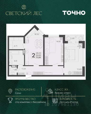 • ✓ В базе Циан 14 2-комнатных квартир на 15 этаже в микрорайоне КСМ в городе Сочи