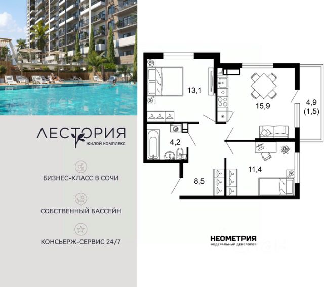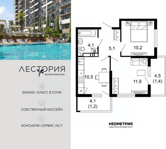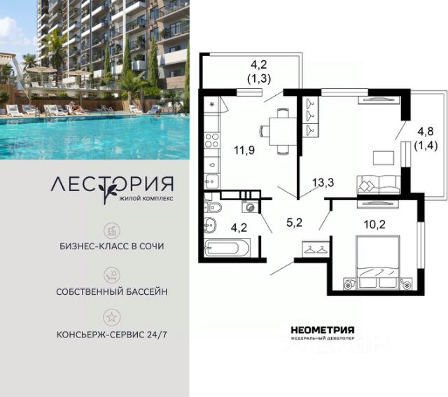 Продается квартира в жилом комплексе бизнес-класса "Лестория". В составе ЖК предусмотрена собственная аквазона площадью 473 квадратных метра с двумя подогреваемыми бассейнами, что соответствуют стандартам бизнес-класса. Аквазона объединяет взрослый и детский бассейны. В welcome-zone к услугам посетителей шезлонги и все необходимые принадлежности. Раздевалки с душевыми комнатами, инфракрасная сауна — здесь все предусмотрено для комфортного отдыха и полного расслабления. Для водного комплекса продуман отдельный вход, оборудованный системой контроля и управления доступом (СКУД). Аквазона только часть уникальной инфраструктуры "Лестории", которая включает в себя также благоустроенную территорию с пятьюдесятью функциональными зонами для прогулок, отдыха и занятий спортом, видовые террасы на крышах для отдыха, работы и встреч с друзьями, а также пространство набережной Кудепсты с шезлонгами и перголами. Жилой комплекс "Лестория" состоит из шести домов высотностью от 15 до 17 этажей, окружённых зеленым массивом национального парка. На придомовой территории для жителей предусмотрены закрытые дворы с круглосуточным видеонаблюдением, активити-центр для детей и подростков, тихие зоны для отдыха и медитации. На крышах домов будут созданы зеленые террасы для наслаждения прекрасными видами на море и горы. В проекте предусмотрены разные варианты отделки квартир под потребности покупателей. Тем, кто хочет воплотить в жизнь собственные интерьерные задумки, подойдут квартиры без ремонта. Для комфортной жизни и отдыха в комплексе будет работать круглосуточный консьерж-сервис уровня 5*, который с легкостью закроет все ежедневные потребности: от заказа продуктов и встречи гостей в аэропорту до выгула и дрессировки питомца. К услугам жителей ЖК "Лестория" — собственная управляющая компания, для инвесторов предоставляются услуги доверительного управления. #ZMfcTE