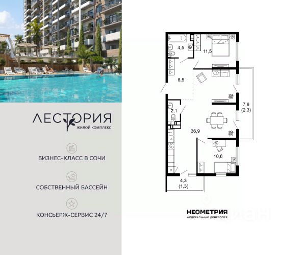 • ✓ В базе Циан 17 2-комнатных квартир на 16 этаже в районе Адлерский в городе Сочи