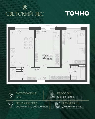 • ✅ Минимальная площадь: 46,2 м²