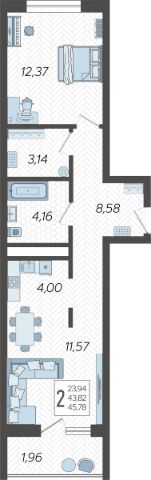 Большая кухня-гостиная с балконом и две изолированные спальни.