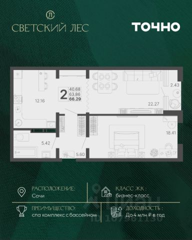 Представляем семейную резиденцию площадью 81.1 м², спроектированную специально для комфортной жизни нескольких поколений. Два самодостаточных крыла обеспечивают раздельное проживание детей и родителей, гарантируя каждому чувство свободы и независимости. Сердцем дома стала гостиная с большим обеденным столом, расположенная рядом с большим окном, которое наполняет помещение естественным светом и создает теплую атмосферу семейных вечеров и дружеских встреч. Выходя на террасу, жители наслаждаются изумительными видами на величественные горы, что придает особое настроение и вдохновляет на новые впечатления. Особенностью плана являются окна, выходящие на три стороны, обширное остекление и открытое пространство, создающие иллюзию неограниченности и близости к природе. Дополнительный гостевой санузел значительно увеличивает удобство пользования жильем. MORETTA - тайное место роскошной безмятежности, первый и единственный дом-Boutique Сочи. Вас очарует камерная локация и подчеркнутая приватность. Виды на море и зелень. Авторская архитектура продолжает гармонию уникального двора-парка с водными садами и лаунж-зонами у воды. 365 дней в году только для резидентов: • инфинити-бассейн с джакузи • фитнес и спа • ресторан • коворкинг • пространства для детей • деликатная забота консьерж-службы и доступ к эксклюзивным ивентам.