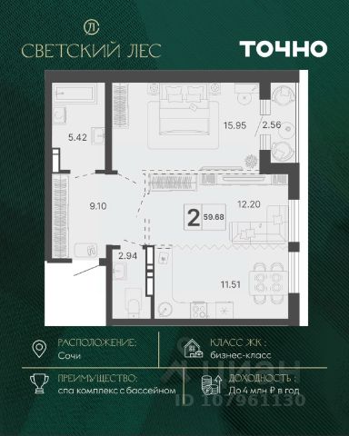 В продаже 2-комнатная квартира площадью 61.2, расположенная Литер 2 жилого комплекса комфорт+ класса "Горный квартал". Комплекс от девелопера AVA находится в Сочи, Хостинского района, в 15 минутах езды от центра города. Отличная транспортная доступность: Остановка маршрутных такси - 5 минут пешком, Барановский виадук - 10 минут на авто, Министерские озера - 2 минуты пешком, Гимназии, детские сады, фитнес-центры, супермаркеты, кинотеатр - 5-10 минут на авто, Ж/Д и автовокзал - 15-20 минут на авто, Адлер - 30 минут на авто, Аэропорт - 45 минут на авто. Аккуратный облик домов Жилой комплекс состоит из пяти корпусов высотой от 10 до 16 этажей. Сдержанные фасады в бежево-серых оттенках выглядят аккуратно и гармонируют с природным окружением, а открытые балконы добавляют облику домов легкости. Контейнеры под кондиционеры встроены в фасады и практически незаметны, благодаря чему дома сохраняют опрятный внешний вид. Комплекс расположен на склоне горы, поэтому из окон квартир на верхних этажах открываются отличные панорамные виды на лес, озеро и город: чем выше этаж, тем выразительнее пейзаж. Двор, где есть место для всех На внутренней территории комплекса всем будет приятно и интересно проводить время в любой сезон. Здесь есть беседки и гамаки под теневыми навесами, что особенно удобно для отдыха в жаркие или дождливые дни. Для активных жителей предусмотрены спортивные площадки и уличные тренажеры, для детей - игровые площадки из натуральных материалов, а для семей и компаний - зона барбекю. Особое преимущество - кинотеатр под открытым небом: формат редкий для жилых комплексов и особенно ценный для совместного семейного досуга прямо рядом с домом. Во всем дворе - ландшафтное озеленение: высажены разнообразные деревья и кустарники, южные цветы и газоны. Природное окружение и идеальная экология Локация особенно понравится тем, кто любит природу и ведет активный образ жизни. Всего в 2 минутах ходьбы находится Нижнее Министерское озеро - отличное место для прогулок и отдыха. Поблизости расположены природные достопримечательности южного побережья, включая Черепашье озеро и дольмены, куда интересно ходить в походы или выезжать на выходные. До общественных и санаторных пляжей можно добраться за 20 минут на автомобиле. Благодаря хвойному лесу и мягкому морскому бризу здесь всегда чистый воздух, а ночами видно звездное небо, что подчеркивает горный характер места и создает редкое ощущение тишины и уюта для Сочи. Дополнительные преимущества Видовые квартиры с окнами на три стороны света и семейные форматы с тремя спальнями, двумя ванными и отдельной кухней; Наземный паркинг для жителей и гостей на 815 машиномест, На первых этажах домов работают магазины, рестораны и салоны красоты, к которым можно спуститься на лифте, Комфортно не только отдыхать, но и полноценно жить всей семьей: гимназии в 10 минутах езды, удобная дорогая до города, магазины и сервисы поблизости.