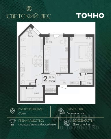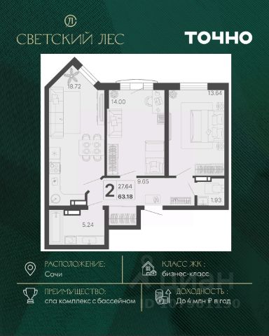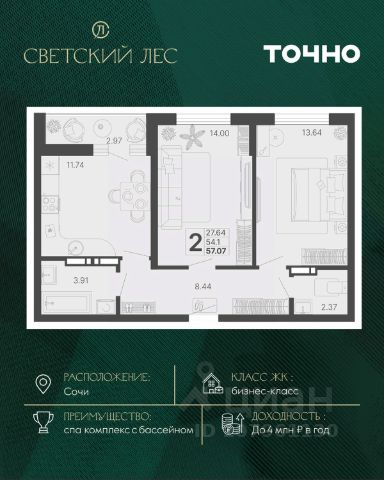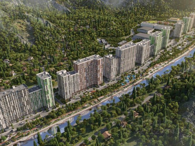 Жилой комплекс состоит из 7 домов переменной этажности от 11 до 20 этажей. В холлах и вестибюлях выполнена дизайнерская отделка, установлены скоростные лифты. На 1 этажах расположены зоны ожидания и колясочные. В проекте предложено множество планировочных решений: в наличии квартиры классического типа. Сдаются они с подчистовой отделкой, панорамными окнами и высотой потолков в 3м. Некоторые квартиры имеют вид на лесной массив и горы. На закрытой территории комплекса выполнен ландшафтный дизайн, установлены безопасные детские площадки для детей всех возрастов, места для отдыха, зоны барбекю с беседками, спортивные площадки, установлен открытый бассейн. На территории также оборудована своя набережная протяженностью в 1,2км. Для владельцев автомобилей предусмотрен отдельный многоуровневый паркинг. Жилой комплекс располагается в активно развивающемся Хостинском районе. В нескольких минутах ходьбы находятся поликлиники, школы, детские сады, кинотеатр, магазины и кафе. До центра Сочи можно добраться за 30 минут транспортом.