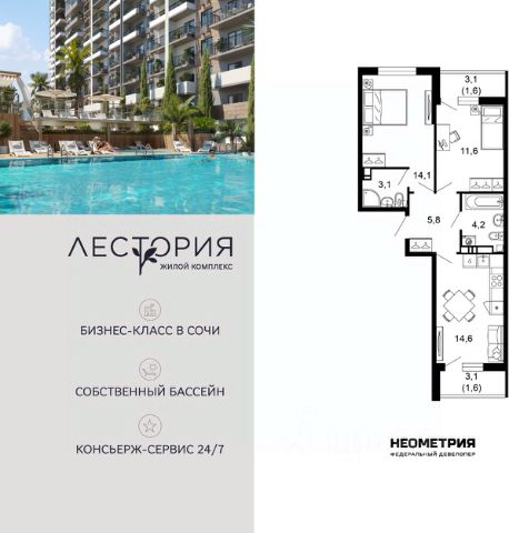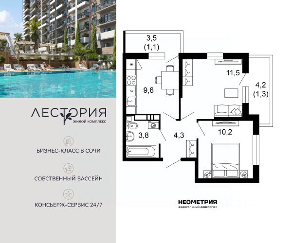 Продается квартира в жилом комплексе бизнес-класса "Лестория". В составе ЖК предусмотрена собственная аквазона площадью 473 квадратных метра с двумя подогреваемыми бассейнами, что соответствуют стандартам бизнес-класса. Аквазона объединяет взрослый и детский бассейны. В welcome-zone к услугам посетителей шезлонги и все необходимые принадлежности. Раздевалки с душевыми комнатами, инфракрасная сауна — здесь все предусмотрено для комфортного отдыха и полного расслабления. Для водного комплекса продуман отдельный вход, оборудованный системой контроля и управления доступом (СКУД). Аквазона только часть уникальной инфраструктуры "Лестории", которая включает в себя также благоустроенную территорию с пятьюдесятью функциональными зонами для прогулок, отдыха и занятий спортом, видовые террасы на крышах для отдыха, работы и встреч с друзьями, а также пространство набережной Кудепсты с шезлонгами и перголами. Жилой комплекс "Лестория" состоит из шести домов высотностью от 15 до 17 этажей, окружённых зеленым массивом национального парка. На придомовой территории для жителей предусмотрены закрытые дворы с круглосуточным видеонаблюдением, активити-центр для детей и подростков, тихие зоны для отдыха и медитации. На крышах домов будут созданы зеленые террасы для наслаждения прекрасными видами на море и горы. В проекте предусмотрены разные варианты отделки квартир под потребности покупателей. Тем, кто хочет воплотить в жизнь собственные интерьерные задумки, подойдут квартиры без ремонта. Для комфортной жизни и отдыха в комплексе будет работать круглосуточный консьерж-сервис уровня 5*, который с легкостью закроет все ежедневные потребности: от заказа продуктов и встречи гостей в аэропорту до выгула и дрессировки питомца. К услугам жителей ЖК "Лестория" — собственная управляющая компания, для инвесторов предоставляются услуги доверительного управления. #zmavzF