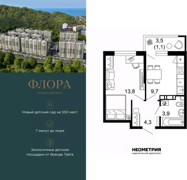 Продаётся 2-комнатная квартира в строящемся доме (Дом 2), срок сдачи: II-кв. 2028, общей площадью 69.73 кв.м., на 2 этаже. Volna Residence - это комплекс для жизни на территории комплекса Volna, объединённый с отелем общей концепцией и инфраструктурой. 3 малоэтажных корпуса на 520 номеров расположены на первой береговой линии и имеют собственный бассейн. Территория комплекса Volna - 7,2 га. Более половины этой территории занимает парк и инфраструктура для жизни и отдыха.