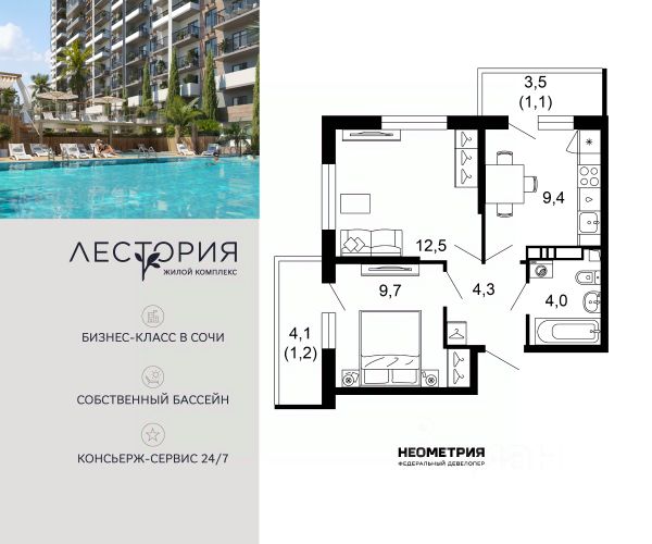 Проект включает в себя 7 жилых корпусов высотой 12 этажей. В подъездах выполнена дизайнерская отделка в светлой цветовой гамме с яркими акцентами, для удобства жителей в местах общего пользования предусмотрена навигация. В каждой секции предусмотрены помещения для хранения велосипедов и колясок с обустроенным местом для мойки колес и лап домашних животных. Покупателям в ЖК предложено множество планировочных решений: в наличии квартиры, как классического типа, так и европланировки. Из окон открываются виды на реку и горы. Квартиры сдаются без отделки. В состав комплекса входит школа на 2 000 мест, детский сад на 550 мест и фитнес-центр. На первых этажах расположены коммерческие помещения. Во дворах установлены детские площадки, спортивные комплексы и деревянные беседки для отдыха. По периметру ЖК ведется видеонаблюдение, к которому можно подключится online при помощи специального приложения для мобильных устройств. Рядом с комплексом располагается благоустроенная набережная реки Кудепста. Комплекс расположен в микрорайоне Кудепста города Сочи. В окрестностях района находится большая плантация пробкового дуба. В пешей доступности есть школы, детские сады, магазины, медучреждения, салоны красоты и места для отдыха. Комплекс расположен в 1,9 км от моря, и 7 км до Сочи.