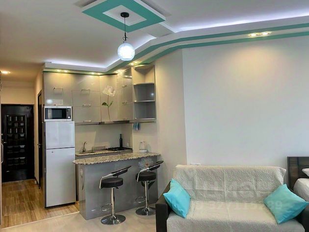 К продаже предлагается просторная и светлая квартира, расположенная в новом комплексе в центральной части курорта. Предложение отлично подойдет для жизни и отдыха людей, для которых важны такие аспекты как высокий уровень развития социальной и деловой инфраструктуры, транспортная доступность. Организуем персональный показ этой квартиры в любой день, ну а пока спешим поделиться подробной информацией. Общая площадь предложения 45 м2. Пространство поделено на непроходную спальную комнату и гостиную, объединенную вместе с кухонной зоной. Вопросу организации и зонирования уделено большое внимание. В спальне установлен трансформирующийся в кровать шкаф. Такое решение существенно экономит место и позволяет использовать комнату как, например, рабочий кабинет. Очень качественный и стильный ремонт отдельный плюс в копилку достоинств квартиры. Дополнительных вложений в обустройство не требуется. Продажа осуществляется с мебелью и техникой, поэтому отметить новоселье вы сможете сразу после покупки. Из окон открывается потрясающий вид на горную панораму и уютные зеленые улочки курорта. Как мы уже отмечали выше, квартира находится в новом доме. Он располагает своей территорией с продуманным ландшафтным дизайном. Есть игровая площадка для детей, а также паркинг для автомобилей собственников. Рядом с домом магазины, аптечные пункты и остановки общественного транспорта. Также в шаговой доступности есть детские сады, гимназия и школа. За 10 минут можно добраться до ТРЦ Море Молл. Дорога до моря занимает около 15 минут. Если вы желаете получить еще более подробную информацию, свяжитесь с экспертами нашей компании по указанным выше номерам. Ответим на все вопросы!