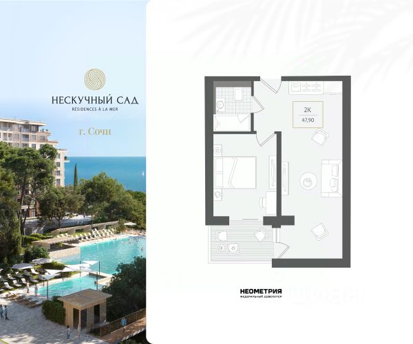 Проект включает в себя 7 жилых корпусов высотой 12 этажей. В подъездах выполнена дизайнерская отделка в светлой цветовой гамме с яркими акцентами, для удобства жителей в местах общего пользования предусмотрена навигация. В каждой секции предусмотрены помещения для хранения велосипедов и колясок с обустроенным местом для мойки колес и лап домашних животных. Покупателям в ЖК предложено множество планировочных решений: в наличии квартиры, как классического типа, так и европланировки. Из окон открываются виды на реку и горы. Квартиры сдаются без отделки. В состав комплекса входит школа на 2 000 мест, детский сад на 550 мест и фитнес-центр. На первых этажах расположены коммерческие помещения. Во дворах установлены детские площадки, спортивные комплексы и деревянные беседки для отдыха. По периметру ЖК ведется видеонаблюдение, к которому можно подключится online при помощи специального приложения для мобильных устройств. Рядом с комплексом располагается благоустроенная набережная реки Кудепста. Комплекс расположен в микрорайоне Кудепста города Сочи. В окрестностях района находится большая плантация пробкового дуба. В пешей доступности есть школы, детские сады, магазины, медучреждения, салоны красоты и места для отдыха. Комплекс расположен в 1,9 км от моря, и 7 км до Сочи.