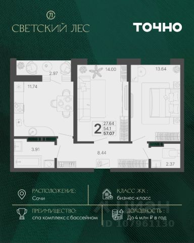 • ✓ В базе Циан 101 2-комнатных квартир на 7 этаже в районе Центральный в городе Сочи