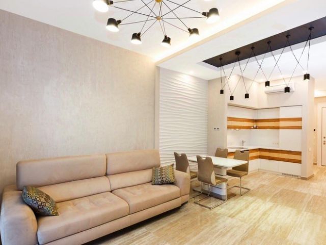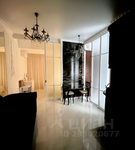 В квартире выполнен дизайнерский ремонт в стилистике Современная классика. При выполнении отделки использовались качественные дорогостоящие материалы: испанский мрамор, зеркальные стены, хрустальные люстры, раздвижные стеклянные двери до потолка (высота потолков 3 метра). Квартира легкая, много воздуха и света. Большие дороги в удалении, нет шума, пыли и грязи, а только свежий воздух из парка и моря, а также пение птиц.