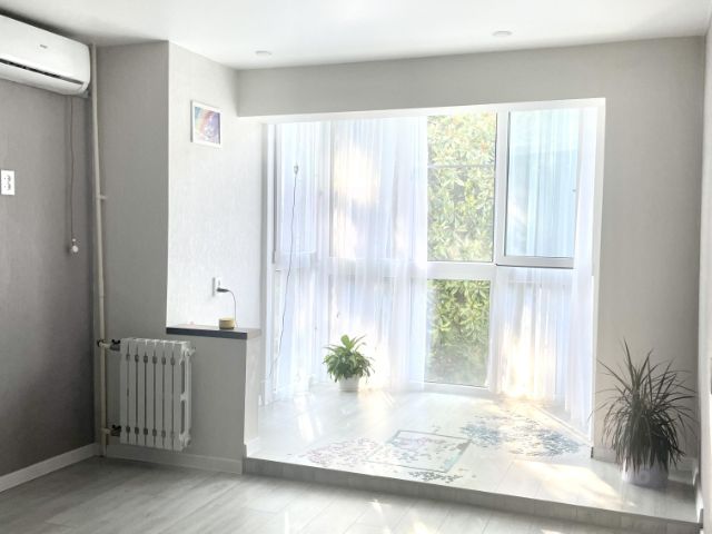 Продается уютная двухкомнатная квартира в самом сердце Сочи, в микрорайоне Гагарина по адресу: Красноармейская улица, 7А. Общая площадь квартиры составляет 33 кв. м, жилая площадь — 23 кв. м, кухня — 7.5 кв. м. Дом построен в 1991 году. Окна выходят во двор, поэтому в квартире тихо и спокойно. Высота потолков составляет 2.65 метра, что добавляет ощущение простора.