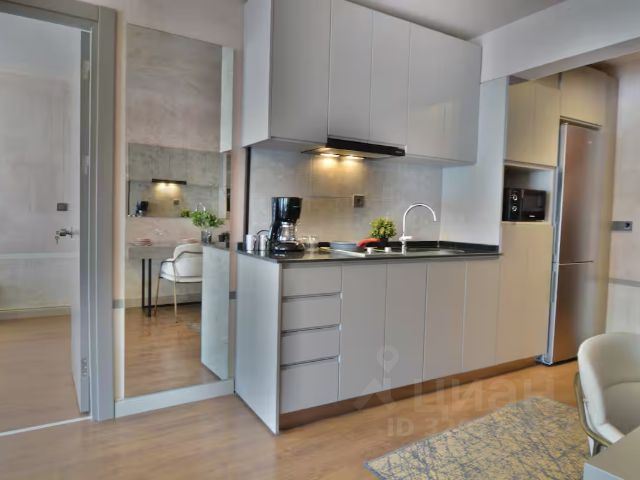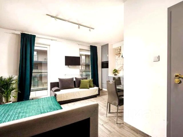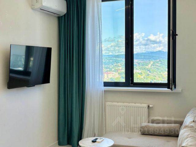 Квартира от СОБСТВЕННИКА в ЖК МАЭСТРО с панорамным окном г.Сочи Хостинский р-н, ул.Учительская д.33. Евродвушка на 2 этаже (этаж высокий, т.к. первые два этажа - парковка и коммерческие помещения) Общая площадь 38 кв.м Балкона нет. Распланирована в небольшую отдельную комнату и кухню-гостиную. При желании можно отделить еще одну спальную зону. Маленькую комнату можно использовать как детскую и как спальню, размер 300*175. В квартире два окна: одно панорамное в кухне-гостиной, второе небольшое в гардеробной. Гардеробная стационарная, вместительная из хороших материалов. Полы плитка, теплые . Отопление теплый пол по всей площади квартиры. Индивидуальное отопление от бойлер электрического, с пониженным тарифом. Квартира теплая. Стены все выравнивались " под маяк", качественные немецкие обои. Кафельная плитка хорошего качества. Есть бельевая сушилка на окне, на улице.Есть кондиционер.