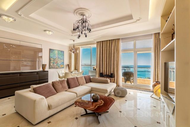 Дизайнерский ремонт. В квартире — ремонт класса Deluxe под авторским надзором. Итальянская мебель, техника Miele, Siemens, Gaggenau, дорогая сантехника, встроенные системы хранения, качественное освещение. Планировка удобная: две спальни, кухня-гостиная с видом на море. Вся мебель и техника, что на фото — остаётся.