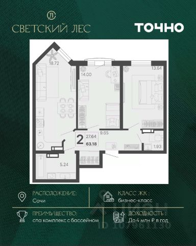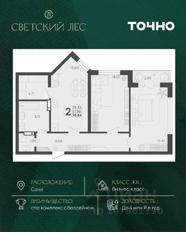 Добро пожаловать в "Grand Royal Residences" - уникальный, даже в масштабах России, комплекс апартаментов, расположенный на самой высокой точке Черноморской Ривьеры в центре Сочи. Пять монументальных корпусов бывшего санатория им. Кирова, приобретающих современный лоск. Решив выбрать нас в этот особый период, Вы сможете наслаждаться роскошью новейших апартаментов, при этом получив привлекательные цены, которые просто несравнимы с периодом официального открытия и полного запуска всего комплекса. Станьте частью новой истории, которую мы создаем прямо сейчас. Выберите апартамент для отдыха уже сегодня. Архитектурный ансамбль из пяти монументальных корпусов бывшего санатория им. Кирова построенный в 1936 году и воссозданный в современном стиле, сохраняет свою историческую ценность и официально признан памятником истории и культуры. Это место для тех, кто предпочитает классическую традицию сиюминутным капризам моды, не готов идти на компромиссы в вопросах комфорта и не нуждается в подтверждении своего статуса. Комплекс находится на закрытой парковой территории площадью 4 га, утопает в зелени тропических и субтропических растений. Уютные зеленые дворики в итальянском и японском стиле каждая деталь призвана подчеркнуть связь архитектуры с окружающим ландшафтом, где проект дизайна территории разрабатывали Arteza ведущая ландшафтная компания России. Grand Royal Residences для настоящих ценителей центра Сочи - всего в 5 минутах езды на автомобиле, расположены основные культурные и развлекательные заведения: парк отдыха "Ривьера", Морской порт, Художественный музей, Дендрологический парк, лучшие рестораны и бутики. Продается 2-комнатная квартира в новостройке в районе Центральный в городе Сочи.